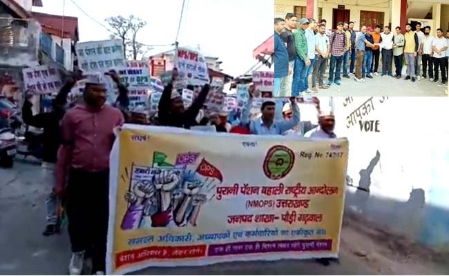 पौड़ी में पुरानी पेंशन बहाली को लेकर कर्मचारियों ने निकाली रैली