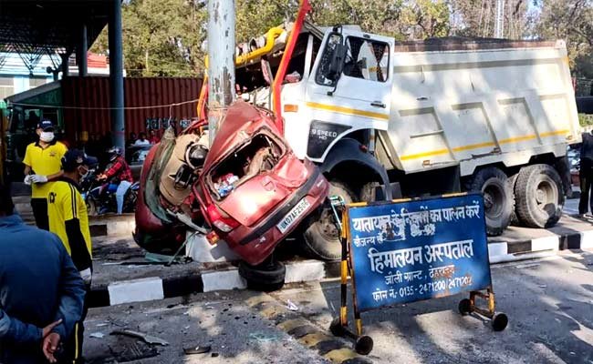 देहरादून: देहरादून के डोईवाला क्षेत्र में आज सुबह एक बड़ा हादसा हो गया। डोईवाला के लच्छीवाला टोल प्लाजा पर खनन सामग्री से लदे एक ट्रक ने टोल पर खड़े वाहनों को जबरदस्त टक्कर मार दी। टक्कर इतनी जबरदस्त थी कि एक कार ट्रक और वहां खड़े पोल के बीच में दब गई। हादसे में दो लोगों की जान चली गई।