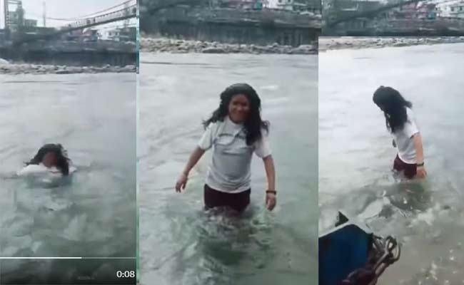 वीडियो की शुरुआत में महिला को बड़े आराम से नदी में जाते देखा गया। महिला के बाल खुले थे। वो कैमरे में देखकर मुस्कुरा रही थी और रील बनवा रही थी। लेकिन तभी नदी के अंदर उसका बैलेंस बिगड़ गया। महिला ने अपना संतुलन खोया और उफनती नदी में बहने लगी। किनारे पर खड़ी बेटी मम्मी-मम्मी चिल्लाते रह गई। ये पूरी घटना मोबाइल में रिकॉर्ड हो गई।