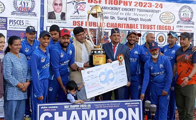 DSF Trophy T-20 Cricket Tournament: देवभूमि स्पोटर्स फाउंडेशन (DSF) पब्लिक चैरिटेबल ट्रस्ट-पंजीकृत द्वारा स्व। सूरज सिंह नायक की स्मृति में आयोजित “DSF ट्रॉफी टी-20 नॉकआउट क्रिकेट टूर्नामेंट 2023-24” का रविवार (17 मार्च 2024) को नोएडा स्टेडियम में सफल समापन हो गया। इस मौके पर संस्था की स्मारिका युवा उड़ान का भी विमोचन किया गया।