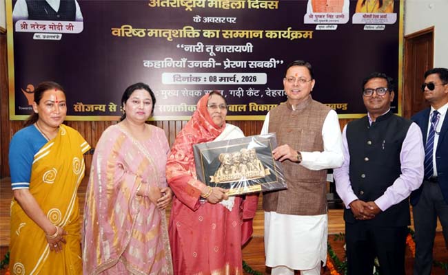 देहरादून: मुख्यमंत्री पुष्कर सिंह धामी ने रविवार को मुख्य सेवक सदन, देहरादून में अंतर्राष्ट्रीय महिला दिवस के अवसर पर वरिष्ठ मातृशक्ति का सम्मान “नारी तू नारायणी” कार्यक्रम में प्रतिभाग किया। इस दौरान मुख्यमंत्री ने शिक्षा, समाज सेवा, उद्यमिता, पर्यावरण संरक्षण, कृषि, संस्कृति, जल संरक्षण जैसे विभिन्न क्षेत्रों में सर्वश्रेष्ठ कार्य करने वाली राज्यभर से 38 वरिष्ठ महिलाओं को सम्मानित किया।