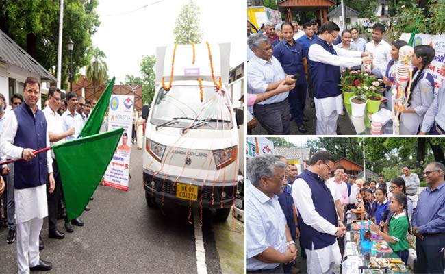 lab on wheels-mobile science lab: मुख्यमंत्री पुष्कर सिंह धामी द्वारा प्रदेश के सरकारी विद्यालयों में पढ़ रहे छात्र-छात्राओं को लैब ऑन व्हील्स के माध्यम से चार मोबाईल सांइस लैब की सौगात दी गई है। शनिवार को मुख्यमंत्री आवास स्थित कैम्प कार्यालय में पहले मोबाईल सांइस लैब के विज्ञान मॉडलों का अवलोकन करते हुए चारों मोबाईल साइंस लैब को हरी झण्डी दिखाकर रवाना किया। इस दौरान मुख्यमंत्री ने विज्ञान मॉडलों को प्रदर्शित कर रहें पीएम राजकीय इण्टर कॉलेज भीमावाला के छात्र-छात्राओं के साथ संवाद भी स्थापित किया।
