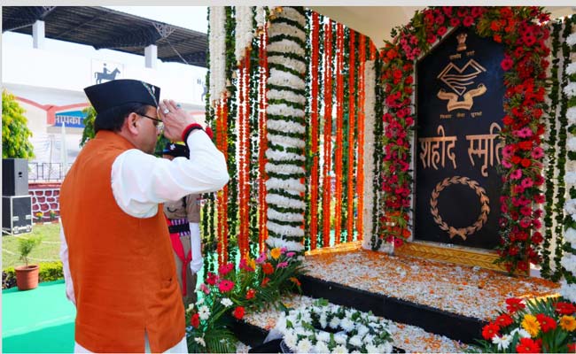 देहरादून: मुख्यमंत्री पुष्कर सिंह धामी ने मंगलवार को पुलिस लाइन्स, देहरादून में पुलिस स्मृति दिवस के अवसर पर आयोजित कार्यक्रम में प्रतिभाग किया। इस दौरान मुख्यमंत्री ने पुलिस एवं अर्द्ध सैन्य बलों के शहीदों को पुष्प चक्र अर्पित कर श्रद्धांजलि दी। मुख्यमंत्री ने शहीद पुलिस जवानों के परिजनों को भी सम्मानित किया।