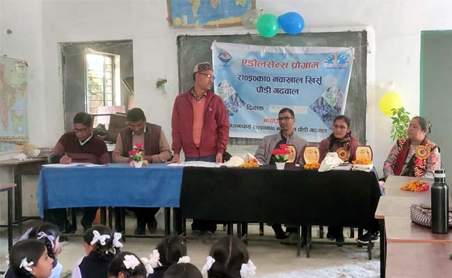 श्रीनगर: समग्र शिक्षा अभियान के तहत आज राजकीय इंटर कॉलेज नवाखाल में बालिकाओं के लिए एडोलिसेंस (किशोरावस्था की समस्याएं एवं समाधान) कार्यक्रम आयोजित किया गया। दो दिवसीय कार्यक्रम का शुभारंभ विद्यालय के प्रधानाचार्य महेंद्र सिंह नेगी एवं मुख्य अतिथि फार्मासिस्ट संदीप चमोली ने मां सरस्वती के सम्मुख दीप प्रज्वलित कर किया। तत्पश्चात विद्यालय के शिक्षक शिक्षिकाओं द्वारा मुख्य अतिथि संदीप चमोली एवं विशिष्ट अतिथि काउंसलर सपना नेगी एवं एएनएम अनिता बिष्ट को पुष्पमाला पहनाकर, शॉल ओढाकर एवं स्मृति चिन्ह भेंट कर सम्मानित किया गया।