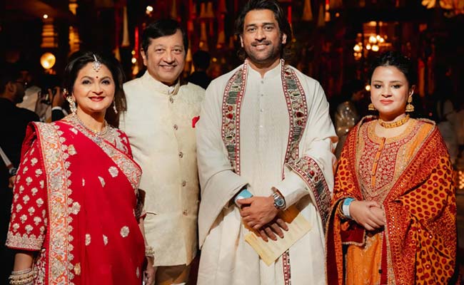 इस मौके पर भारतीय क्रिकेट टीम के पूर्व कप्तान महेंद्र सिंह धोनी और उनकी पत्नी साक्षी भी प्री-वेडिंग फंक्शन का हिस्सा बने। साक्षी धोनी ने अपने इंस्टाग्राम पर अनंत और राधिका मर्चेंट की प्री वेडिंग की कुछ तस्वीरें शेयर की हैं। जिनमे से एक तस्वीर खूब वायरल हो रही है, जिसमें साक्षी पहाड़ी पिछौड़ा ओढ़े नजर आ रही हैं। साथ ही गले में गुलुबन्द भी पहना है। साक्षी धोनी के ट्रेडिशनल अंदाज की यूजर्स तारीफ करते हुए नहीं थक रहे हैं।![]()