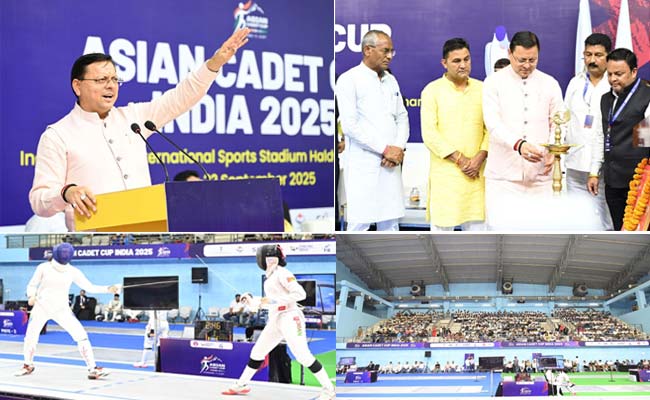 हल्द्वानी: शुक्रवार को हल्द्वानी पंहुचे मुख्यमंत्री श्री पुष्कर धामी ने इंदिरा गांधी अंतरराष्ट्रीय स्टेडियम गौलापार में एशियाई कैडेट कप फेंसिंग प्रतियोगिता का दीप प्रज्वलित कर शुभारंभ किया गया।